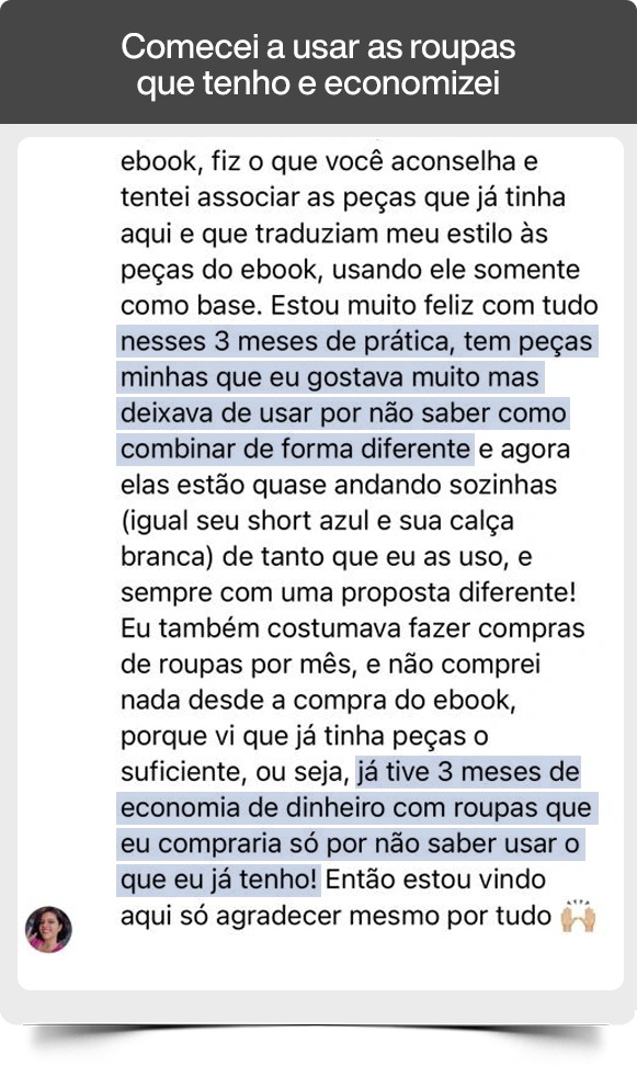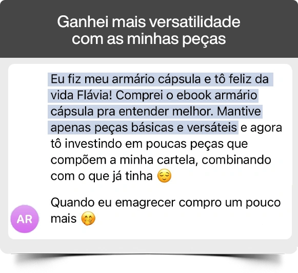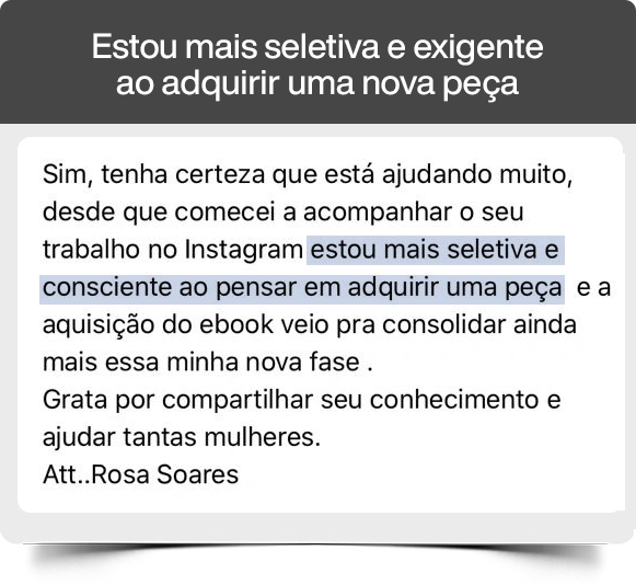 Se o EBOOK GUARDA-ROUPA CÁPSULA não for para você, solicite o cancelamento em até 7 dias e receba seu dinheiro de volta, sem burocracia.